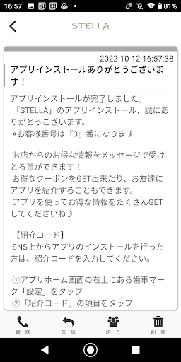 STELLAのアプリをSNSを通じてお友達に紹介する事ができます。