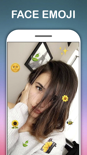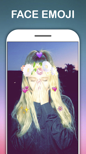 Emoji Photo Editor edit your photo to look cute girl with hundred of emoji background, heart crown effect, flower crown, dog face camera, cat stickers..