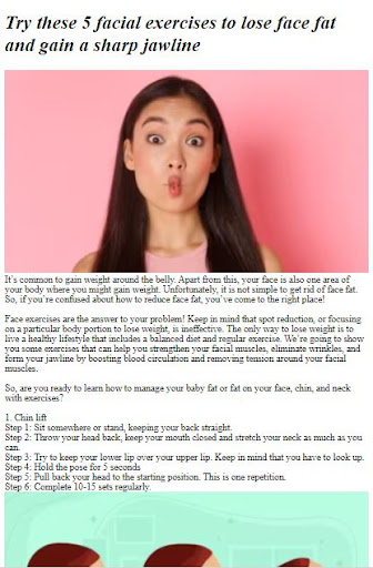 Welcome to Face Slimming Exercises, your trusted companion for achieving a sculpted and youthful facial appearance. Say goodbye to bloating and embrace defined facial contours with our expertly designed app. Discover a series of targeted exercises and techniques that will help you tone and slim your face, allowing your natural beauty to shine through.