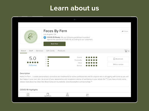 • Book acne treatment, skin care, facials, and waxing. with your favorite service provider