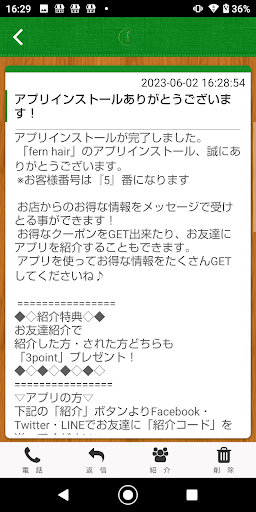 fern hairのアプリをSNSを通じてお友達に紹介する事ができます。