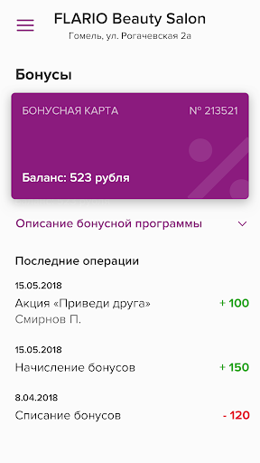 – Личный кабинет с историей всех предыдущих и будущих визитов, а также любимых услуг