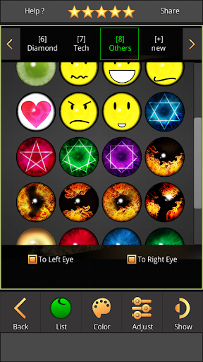 ✔ Adjust brightness, darkness and color of each eye.