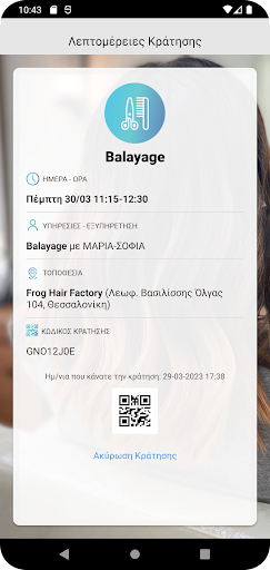 Εφαρμογή κρατήσεων για το Frog Hair Factory! Κάντε τώρα εύκολα την κράτηση σας επιλέγοντας τις υπηρεσίες μας και το προσωπικό που θέλετε να σας εξυπηρετήσει.