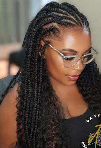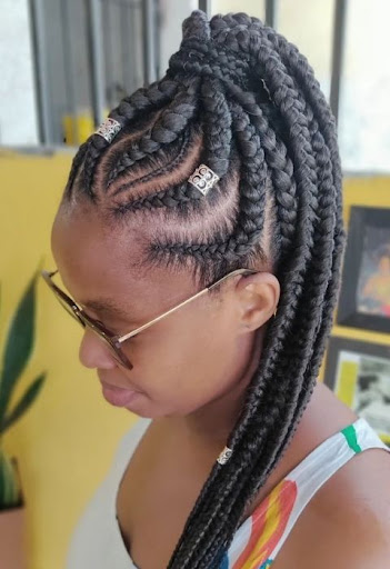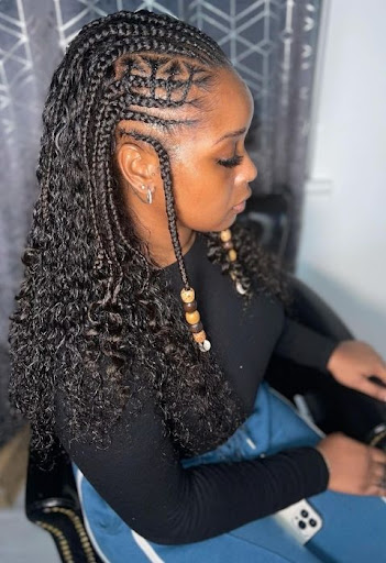 To give your Fulani braids a more chic, trendy, and unique look, you can use affordable hair accessories such as rings, cuffs, beads, or colorful extensions. You can have them styled as a ponytail, half top bun, you can also have these Fulani braids mixed with Crochet Braids or twist braids. You can wear Fulani braids every day or for a special occasion. Sit back, and take your time to select from this collection.