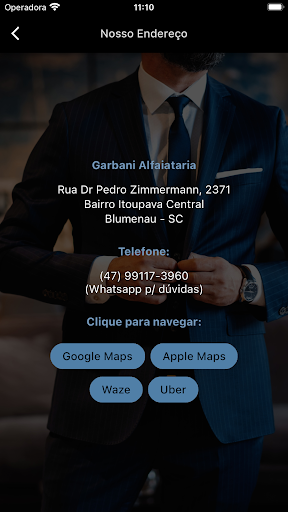 – Acessar os botões de navegação para chegar até nós (Maps, Uber, Waze).