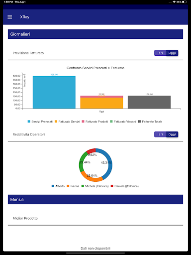 Go Manager is the APP that allows the entrepreneur to constantly monitor the progress of his activity. In a moment you can view graphs of turnover, customer access, sales of services and products, employee productivity, appointments on the agenda.