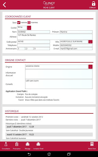 L’application professionnelle Guinot permet aux esthéticiennes du réseau Guinot de personnaliser l’application de leurs clientes.