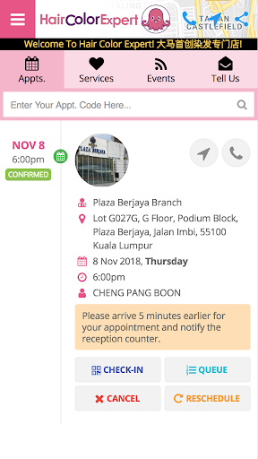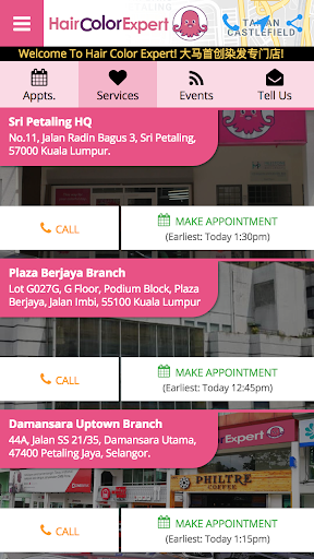 As part of our effort to save your precious time, download Hair Color Expert (HCE) Mobile App to check our branches availability and make an appointment with us!