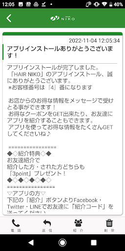 ヘアニコのアプリをSNSを通じてお友達に紹介する事ができます。
