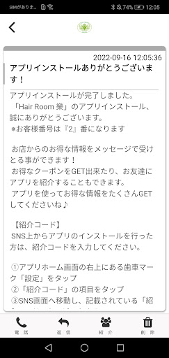Hair Room 樂のアプリをSNSを通じてお友達に紹介する事ができます。