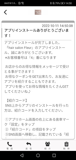 フルールのアプリをSNSを通じてお友達に紹介する事ができます。