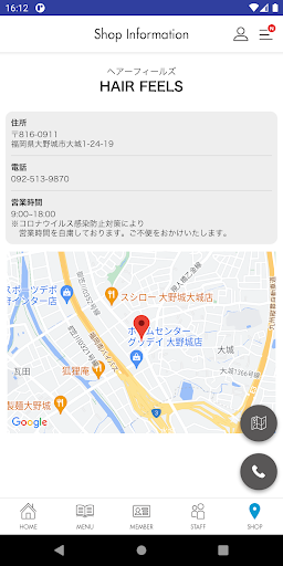 ホーム画面からボタン1つで簡単に電話予約が可能です。