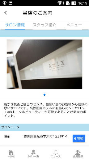オフィシャルホームページやブログやヘアカタログなどへもこのアプリからスムーズに移動することができますのでAmixの情報はここですべて手に入ります。お気軽に閲覧ください。