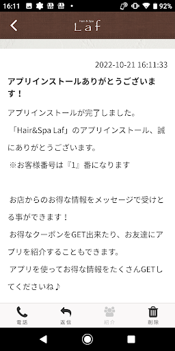 Hair&SpaLafのアプリをSNSを通じてお友達に紹介する事ができます。