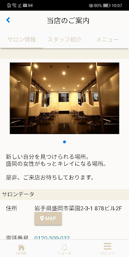 マイページから、予約状況の確認が行えます。来店履歴やポイントの確認と、お店で撮影したフォトを見ることが出来ます。また店舗からのキャンペーン等のお知らせを受け取ることが出来ます。