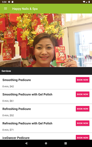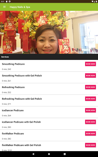 4. Services Menu: Browse the services we offer with times and prices.