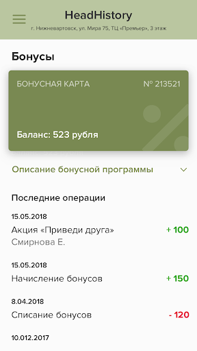 – Личный кабинет с историей всех предыдущих и будущих визитов, а также любимых услуг