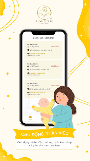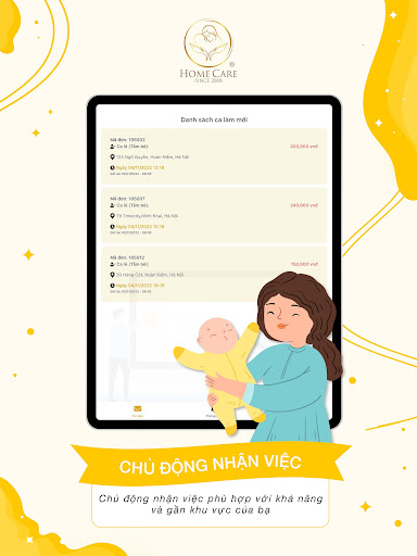 Ứng dụng Home Care Provider là một ứng dụng trong hệ sinh thái Home Care. Người lao động đăng ký và sử dụng Home Care Provider để được đào tạo và nhận việc chăm sóc mẹ bé ở xung quanh khu vực đang sinh sống.