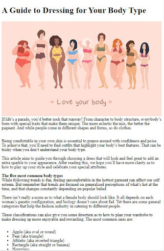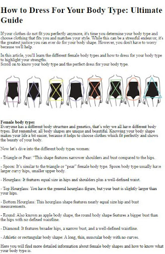 Welcome to “How to Dress for Your Body,” your ultimate guide to unlocking your style potential and embracing fashion that flatters your unique body shape. Whether you’re curvy, athletic, petite, or any other body type, our app is here to help you confidently dress in a way that accentuates your best features and boosts your self-confidence.