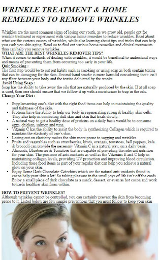Welcome to Wrinkle-Free, your go-to app for achieving smooth, youthful skin and saying goodbye to unwanted wrinkles. If you’re seeking effective solutions and expert advice to reduce the appearance of wrinkles, look no further! Our app provides a wealth of information, practical tips, and proven techniques to help you combat wrinkles and embrace a more confident, age-defying look.