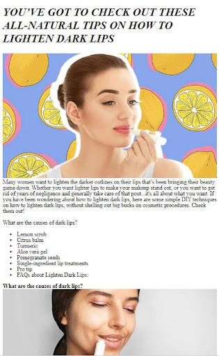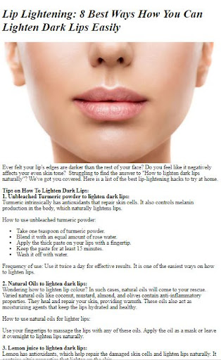 Welcome to our app, How to Lighten Dark Lips, your trusted companion in achieving luscious and radiant lips. If you’re seeking ways to lighten dark lips and enhance your smile, look no further! Our app provides expert guidance, effective remedies, and practical tips to help you achieve naturally pink and beautiful lips.