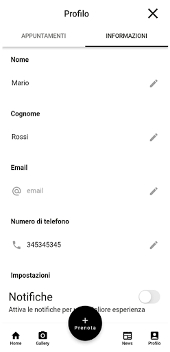 La nostra applicazione mobile consente ai nostri clienti di prenotare un appuntamento presso il negozio. Gli utenti possono scegliere il giorno e l’ora dell’appuntamento, selezionare il servizio desiderato e da chi essere serviti. Inoltre, l’app fornisce informazioni sugli eventi speciali.