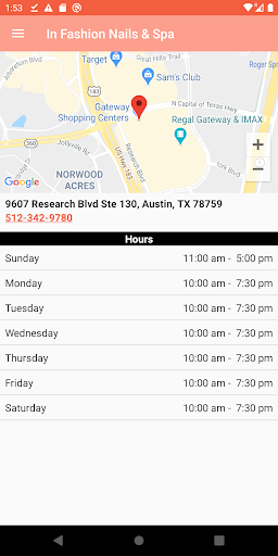 Download the In Fashion Nails & Spa App today to schedule your appointments! From this mobile app, you can view our services, staff, book appointments as well as view the salon’s location and contact information. You can also click through our image gallery.