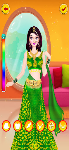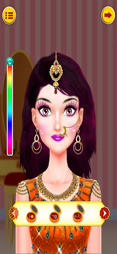 There are important rituals of a traditional Indian Bridal Makeover Game. Big Indian wedding traditions include many rituals performed on the day like makeup dressup, haldi ceremony, mehndi, Hair salon, hand manicure, pedicure, hand mehndi, leg mehndi, bride haldi, groom haldi,face spa, bride dress up, groom dress up, Wedding etc.