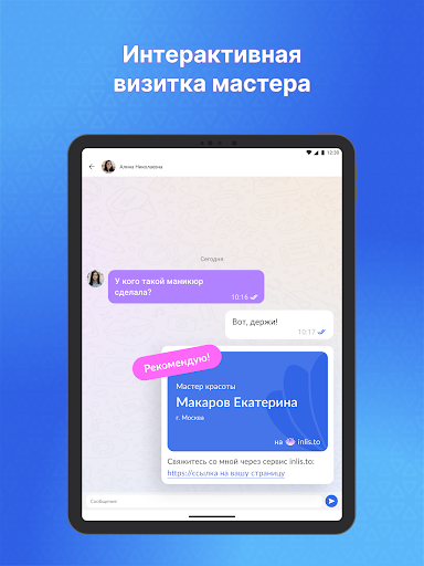 * Инструменты для организации работы: календарь, визитка, автоматические напоминания клиентам.