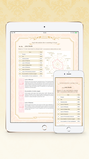 ・ Based on enzyme nutrition, analyze 11 food risks from answers to 21 questions regarding lifestyle habits.