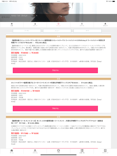 マイページでは、来店履歴や予約内容の確認も行なえます。