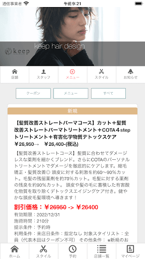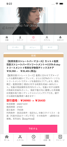 希望スタッフのスケジュールを確認して、いつでもどこでも手軽にサロン予約。
