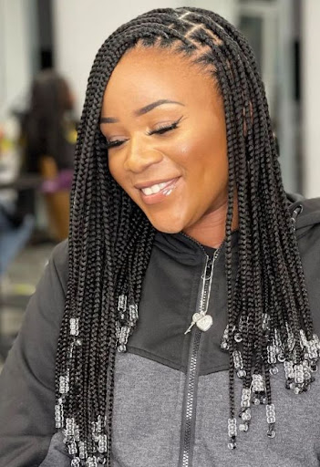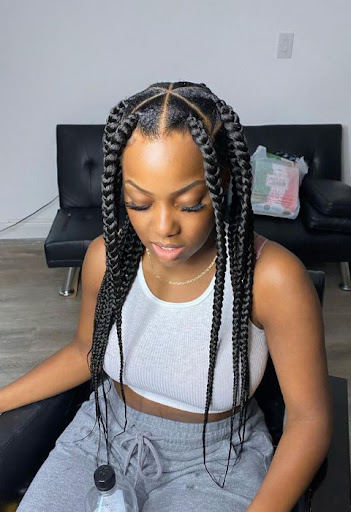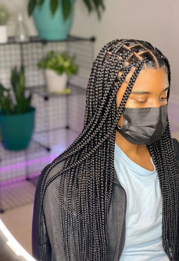 Knotless braid styles are trending and are less painful compared to traditional styles. They also don’t cause product build. You can rock in jumbo, loose, tiny, long, short, and medium forms.