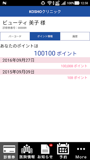 その他、ポイント情報や診察履歴の確認、お得なキャンペーン情報等をタイムリーにお届け致します。