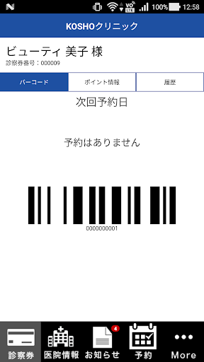 バーコードをかざすだけで受付出来るチェックイン機能、次回ご予約日時表示など、カードレスな診察券としてご活用頂けます。