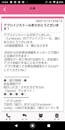 このアプリでは、La Beauteの最新情報の受け取りや便利な機能を使う事ができます。