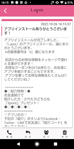 また、お店からメッセージが届くので、いつでも最新の情報がご確認いただけます。