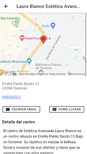 El centro de Estética Avanzada Laura Blanco es un centro situado en Emilia Pardo Bazán,13 Bajo en Ourense. Su objetivo es realzar la belleza facial y corporal de sus clientes y hacer que se sientan bien con ellos mismos.