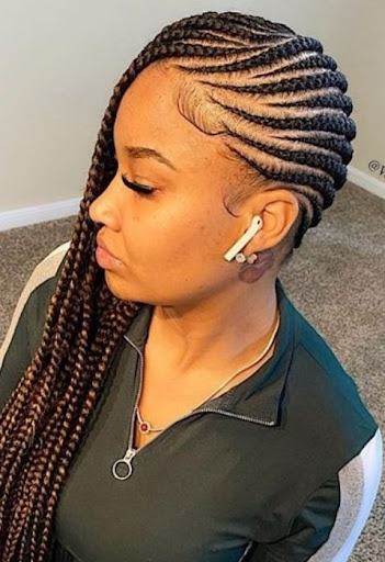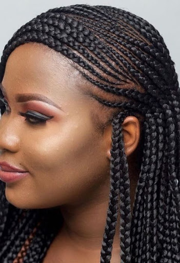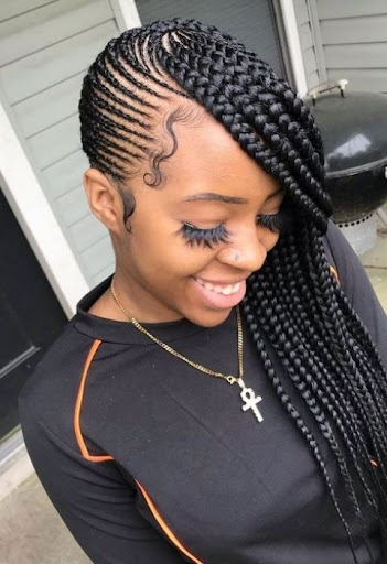 These side cornrow braid hairstyles are unique. You can wear them as jumbo braids for those who love big braids. Wearing them in the tiny form is also very popular and always cute on every lady.