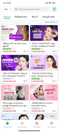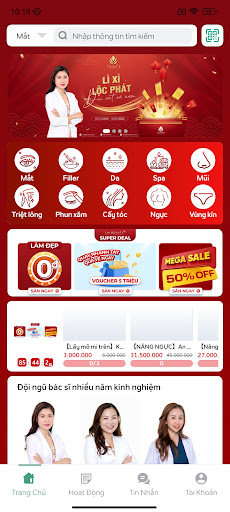 Đặt hẹn, xem tin tức, nhắn tin với bác sĩ, chia sẽ hành trình làm đẹp