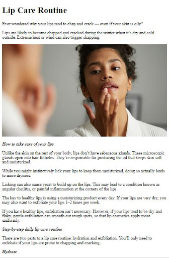 Welcome to Care For Your Lips, your ultimate companion for achieving soft, healthy, and beautiful lips. Say goodbye to dryness, chapping, and discomfort as you unlock the secrets to optimal lip care. Our expertly crafted app provides you with valuable tips, techniques, and resources to help you nourish, hydrate, and enhance your perfect pout.