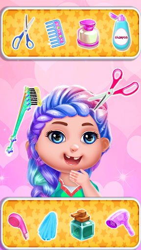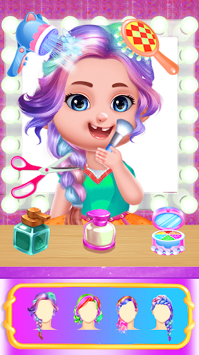 hair style fashion braids is always in trend for kids and girls. In chic baby girls games girls can enjoy combing their soft, silky hairs and parted side hairs in a bun. Little girls can enjoy updos making braids, side braids, mid braids, buns, ribbons for curly hairs, straightens, French pony tail, high braids and many more. While enjoying your hair styling you will get the opportunity to colour your hairs in this so you will have variety of hair colors and choose the accessory for head like pins, bows, hair ties and so on.