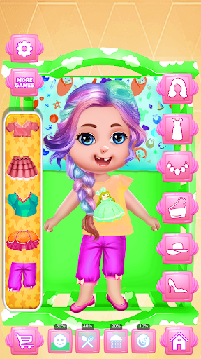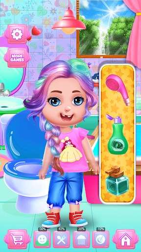 Welcome to the world of cute babies Ms Violet where you can perform your duties as a Nursery nanny and best babysitter. Little kids should have to take care of cute little baby girl in baby dress up for girls games. Baby girl summer dress up can be happened here, Toilet potty training, baby sleeping, chic baby sleeping, bed time, Hairdresser salon time, bath time, book reading and workout and many more.