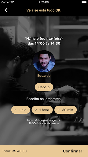 – Agendar seu horário para fazer cabelo e/ou barba;