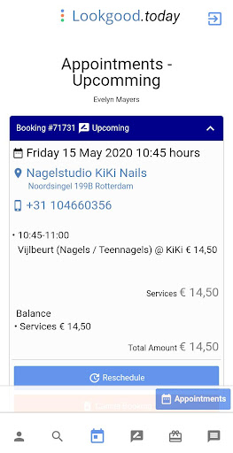 With the Lookgood.today app customers of Beauty Salons can manage Appointments, Reviews, Gift Cards, communicate with Salons and with Lookgood.today places they can make new appointments.
