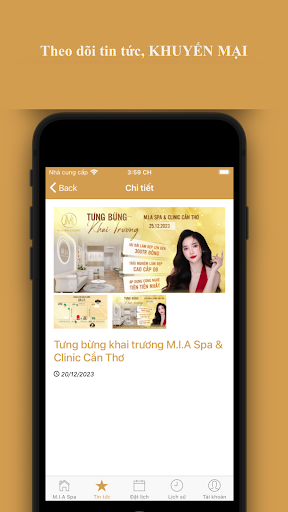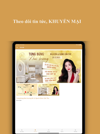 Ứng dụng di động giúp khách hàng của M.I.A Spa & Clinic có thể:
