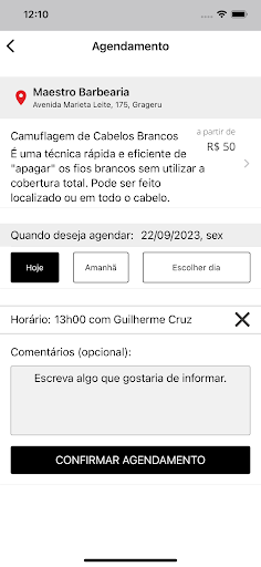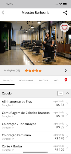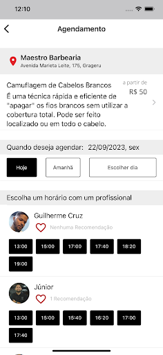 Na busca, você pode escolher seu profissional preferido, serviço, o melhor horário e a data de forma rápida e prática.