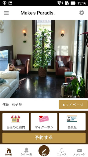 マイページから、予約状況の確認が行えます。来店履歴やポイントの確認も