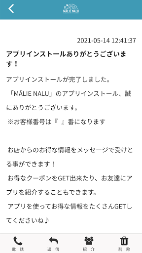 MALIE NALUのアプリをSNSを通じてお友達に紹介する事ができます。